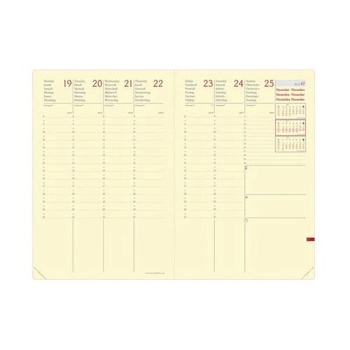 - Agenda hebdomadaire avec présentation de la semaine sur 2 pages afin d’offrir une vue d’un seul coup d’œil.