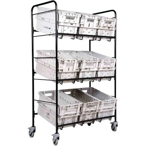 - Chariot support bacs postaux inclinés répartis sur 3 niveaux idéal pour le pré-tri avant affranchissement.
