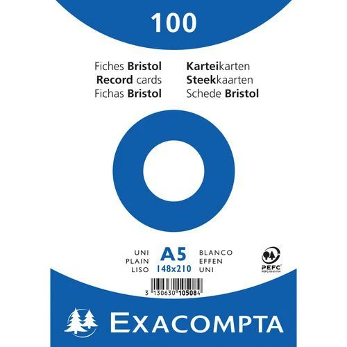 - Paquet 100 fiches sous film – bristol uni non perforé 148x210mm Haut standard de qualité et de régularité.