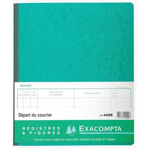 - La piqûre Exacompta départ courrier permet de noter la date, le nom du destinataire, l’objet du courrier…Plus mince qu’un registre, le cahier piqûre est facile à transporter et à classer.