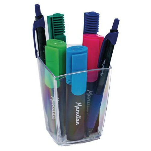 - Pot à crayons fonctionnel transparent.