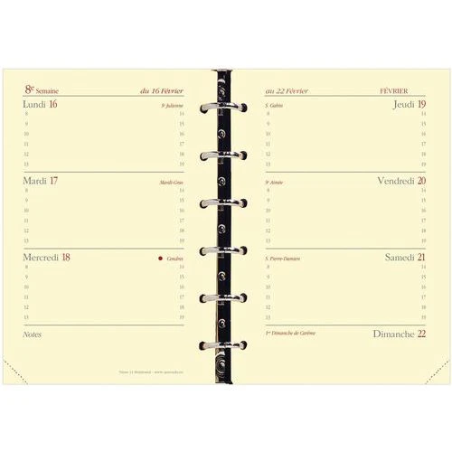 - Présentation de la semaine sur 2 pages à l’horizontale afin d’offrir une vue d’un seul coup d’œil.